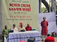 অধ্যাপক অশোক সাহার সভাপতিত্বে এবং শ্রমিকনেতা নুরুচ্ছাফা ভূঁইয়া’র সঞ্চালনায় আয়োজিত সমাবেশে বক্তব্য রাখেন প্রাবন্ধিক ও সাংবাদিক আবুল মোমেন, বীর মুক্তিযোদ্ধা মো. শাহ আলম, প্রবীন সাংবাদিক সুভাষ দে, শিক্ষক নেতা..