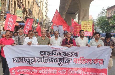 মার্কিন যুক্তরাষ্ট্রের সাথে সম্পাদিত বাণিজ্য চুক্তি বাতিলের দাবিতে দেশব্যাপী বিক্ষোভ কর্মসূচির অংশ হিসেবে ঢাকার পুরানা পল্টন মোড় থেকে নবাবপুর পর্যন্ত পদযাত্রা কর্মসূচি অনুষ্ঠিত হয়েছে। পদযাত্রাপূর্ব সমাবেশে সিপিবি ঢাকা মহানগর দক্ষিণ জেলা কমিটির নেতৃবৃন্দ বলেন, একটি অসম বাণিজ্য চুক্তির জালে বাংলাদেশকে আষ্টেপৃষ্টে বেঁধে ফেলা হয়েছে। কার্যকর হওয়ার আগেই এ চুক্তি বাতিল করতে হবে।