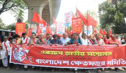 দেশের বৃহৎ জনগোষ্ঠী ক্ষেতমজুরসহ গ্রামীণ মজুরদের ঐতিহ্যবাহী লড়াকু সংগঠন বাংলাদেশ ক্ষেতমজুর সমিতির একাদশ জাতীয় সম্মেলনের উদ্বোধনী অধিবেশনে নেতৃবৃন্দ বলেছেন, মহান মুক্তিযুদ্ধ ও গণ-অভ্যুত্থান ’২৪-এর আকাঙ্ক্ষা ছিল শোষণ-বৈষম্যমুক্ত বাংলাদেশ। মহান মুক্তিযুদ্ধের ৫৪ বছরেও যেমন তাঁর আকাঙ্ক্ষা বাস্তবায়ন হয়নি। তেমনি গণ-অভ্যুত্থান ’২৪-এর আকাঙ্ক্ষারও বাস্তবায়নের কোনো লক্ষণ দেখা যাচ্ছে না। শোষণ-বৈষম্যমুক্ত বাংলাদেশ গড়ার মাধ্যমেই গণ-অভ্যুত্থানের আকাঙ্ক্ষা বাস্তবায়িত হবে। ক্ষেতমজুরদের ভাগ্য পরিবর্তনের জন্য শোষণ-বৈষম্যমুক্ত বাংলাদেশ গড়ার জোরদার করতে হবে বলে নেতারা অঙ্গীকার ব্যক্ত করেন।