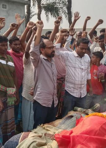 বলুহর বাঁওড় পাড়ে পোড়ামারি শ্মশানে প্রয়াত কমরেড নিত্য হালদারের মরদেহ সমাধিস্থ করা হয়েছে। প্রয়াতের নিজগ্রাম জয়দিয়া বাঁওড় পাড়স্থ বাড়িতে গিয়ে শোকসন্তপ্ত পরিবারের সাথে সাক্ষাত করে শোক ও সমবেদনা জানিয়েছে সিপিবি নেতারা। এসময় উপস্থিত ছিলেন সিপিবি ঝিনাইদহ জেলা কমিটির সাধারণ সম্পাদক আবু তোয়াব অপু, ক্ষেতমজুর সমিতি কেন্দ্রীয় সদস্য ও জেলা সাধারণ সম্পাদক সুজন বিপ্লব প্রমুখ। নেতারা বলেন, বাঁওড়সহ জলমহালে ইজারা বাতিল ও সামাজিক মালিকানা প্রতিষ্ঠার চলমান আন্দোলনসহ গরিব জেলে-মজুর-ভূমিহীন শ্রমিক-জনতার অধিকার আদায়ে আমৃত্যু সোচ্চার ও সক্রিয় ছিলেন কমরেড নিত্য হালদার। আমরা এক পার্টি কমরেডকে হারালাম।