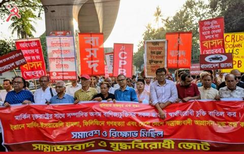 যুক্তরাষ্ট্রের সাথে স্বার্থবিরোধী বাণিজ্য চুক্তি বাতিলের দাবিতে রাজধানীতে সাম্রাজ্যবাদ ও যুদ্ধবিরোধী জোটের মিছিল একতা প্রতিবেদক :