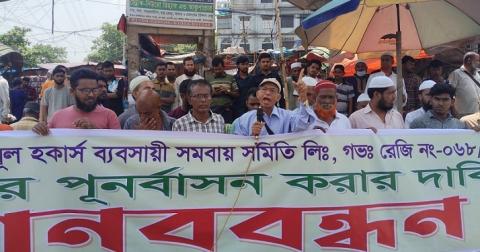 দুলাল সাহা বলেন, এ ধরনের অমানবিক উচ্ছেদ অভিযান মেনে নেওয়া যায় না। হাইকোর্টের রায় বিদ্যমান আছে পুনর্বাসন ছাড়া হকার উচ্ছেদ করা যাবে না। আমরা প্রস্তাব করছি, নারায়ণগঞ্জ সিটি কর্পোরেশনের মাননীয় প্রশাসক, অত্র এলাকার মাননীয় সংষদ সদস্য, মাননীয় নারায়ণগঞ্জ জেলা প্রশাসক, মাননীয় জেলা পুলিশ সুপার, জেলা পরিষদের মাননীয় প্রশাসকসহ বিভিন্ন রাজনৈতিক দলের নেতৃবৃন্দ ও ছিন্নমূল ক্ষুদ্র ব্যবসায়ী নেতৃবৃন্দের সাথে বসে পুনর্বাসনের পরিকল্পনা করা হোক। পূণর্বাসনের আগ পর্যন্ত ক্ষুদ্র ব্যবসায়ীরা যাতে পরিবার পরিজন নিয়ে বাঁচতে পারে সে ব্যবস্থা করা হোক। পূণর্বাসনের পূর্বে তাদের ফুটপাতে বসার সুযোগ দেওয়া হোক। আমরা বিশ্বাস করি গণতান্ত্রিকভাবে নির্বাচিত সরকার এই ব্যাপারে হকার সহ ছিন্নমূল ক্ষুদ্র ব্যবসায়ীদের প্রতি সদয় হবেন।