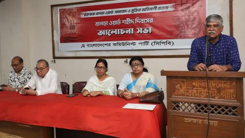 ঐতিহাসিক খাপড়া ওয়ার্ড শহীদ দিবসে রাজধানীর পুরানা পল্টনের মুক্তি ভবনে আয়োজিত আলোচনা সভায় বক্তব্য রাখেন সিপিবির সভাপতি কাজী সাজ্জাদ জহির চন্দন [ ছবি: রতন কুমার দাস ]একতা প্রতিবেদক :