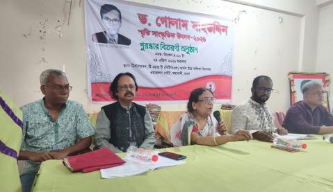 আনন্দঘন পরিবেশে অনুষ্ঠিত হলো ড. গোলাম মহিউদ্দিন স্মৃতি সাংস্কৃতিক উৎসবের পুরষ্কার বিতরণী অনুষ্ঠান। গত ২৪ এপ্রিল বিকাল ৪টায় রাজধানীর মহাখালী ওয়ারলেস গেইট টি এ্যান্ড টি (বিটিসিএল) আদর্শ উচ্চ বালিকা বিদ্যালয় মিলনায়তনে আয়োজিত হয় এ অনুষ্ঠান। সেখানে উপস্থিত ছিলেন শিক্ষক, বিচারক, আমন্ত্রিত অতিথি ও ছাত্রছাত্রীরা। উৎসবের সমাপনী দিনে প্রতিযোগিতার ১৯টি বিষয়ের ৫৭ জন বিজয়ীর হাতে পুরস্কার ও শুভেচ্ছা স্মারক তুলে দেন বিশিষ্টজনেরা।