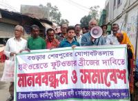 শেরপুরের ঘোগা বটতলায় ফুটওভার ব্রিজ নির্মাণের দাবিতে মানববন্ধন